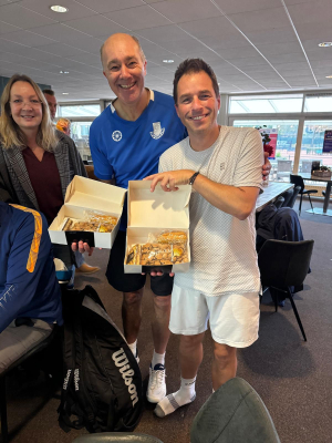 Zoals elk jaar speelde niet alleen het tennissen een hoofdrol—de hapjes van Carlo en Daniëlle waren minstens zo belangrijk. Na elke wedstrijd stond er weer iets lekkers klaar: van nacho’s, bitterballen en vlammetjes tot mini-sandwiches, saté met kroepoek, frietjes, groentestengels met dip, bruschetta met geitenkaas en honing en nog veel meer heerlijke hapjes. Ze vielen goed in de smaak!